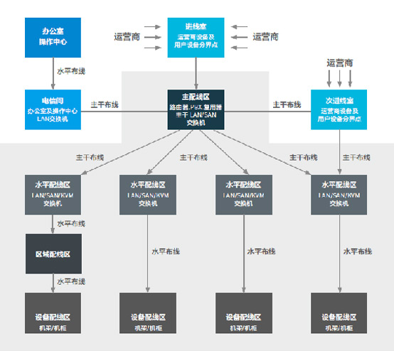 数据中心主要用于电子信息处理、存储、交换和传输设备的安装、运行和维护的建筑空间,包括服务器机房、网络机房、存储机房等功能区域,安装有服务器设备(可能是主机或小型机)、存储区域网络(SAN)和网络连接存储(NAS)设备、磁带备份系统、网络交换机,以及各种的机柜/机架、布线和走线通道等。