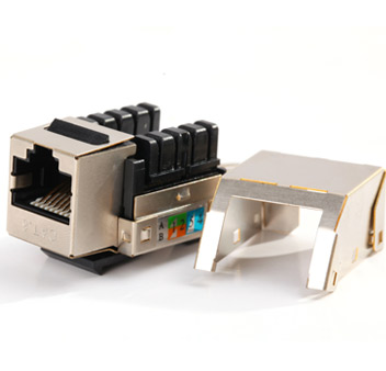 产品特性:超五类RJ45插座模块依据ISO/IEC11801、TIA/EIA568设计制造的性能优异的FTP电缆用8线式插座模块。