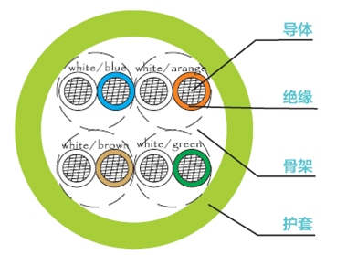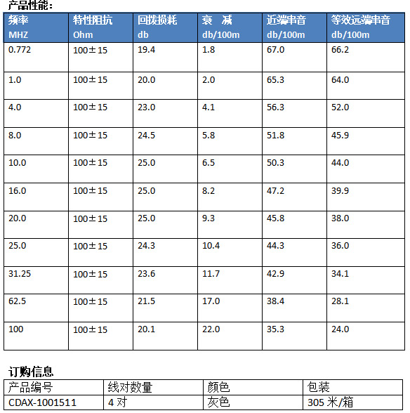 结构化布线数据传输电缆,传输语音、数字和视频信号,支持千兆以太网应用,最高传输频率100MHZ.。