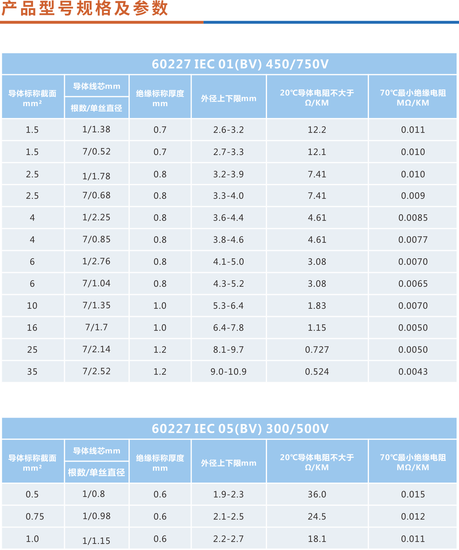 品名:单芯导体聚氯乙烯绝缘无护套电线电缆