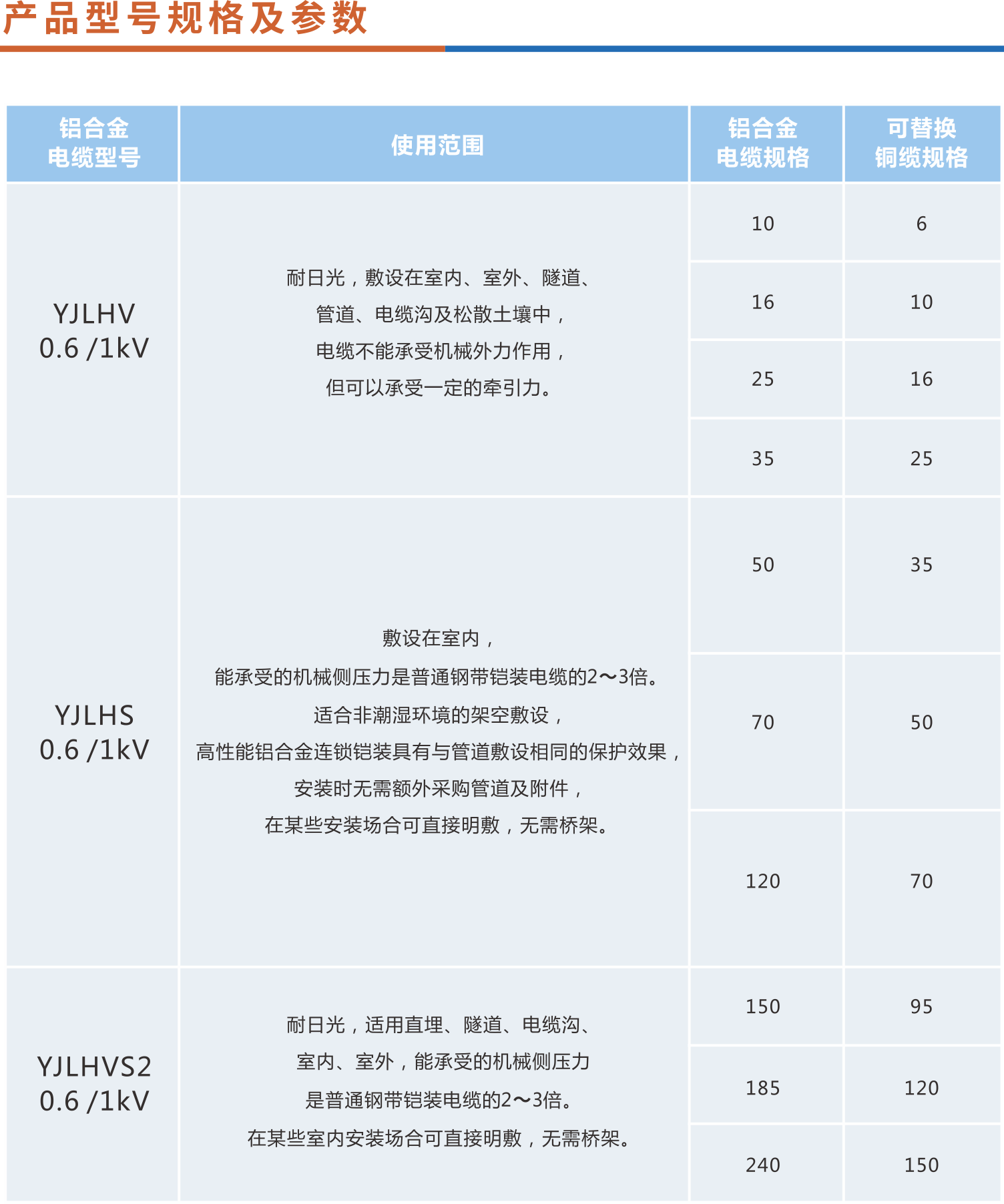 产品特点:适用环境温度范围-15~+90℃或-40~+90℃,采用紧压型稀土铝合金导体,抗蠕
