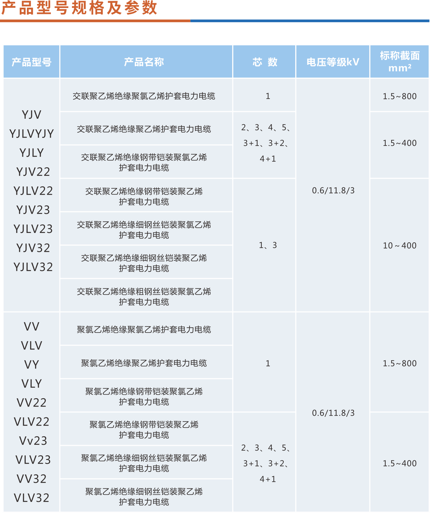 型号、名称及规格范围:单芯铠装电缆仅用于直流系统,若用交流系统,应采用非
